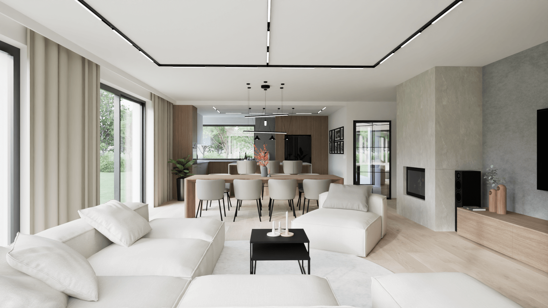 Projekt wnętrz domu jednorodzinnego w modernistycznej stylistyce pod Krakowem